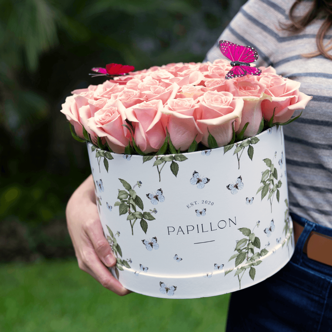 Nuestros Hat Box, son de esos arreglos que sorprenden y decoran cualquier espacio. Escoge tú mismo la base que más te guste y dale un toque único a tu Hat Box.
