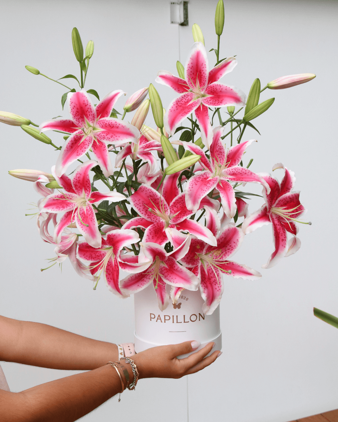 Descubre nuestros arreglos con lirios. Estos representan pureza, serenidad y elegancia, por lo que son ideales para momentos y celebraciones importantes.